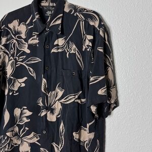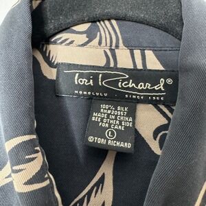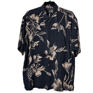 Tori Richard Honolulu Mens Large Silk Floral Hawaiian Aloha Shirt Gray Tan Large