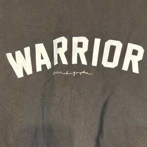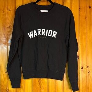 Black sweatshirt with 'Warrior' text. Comfortable and stylish. Perfect for casual wear.