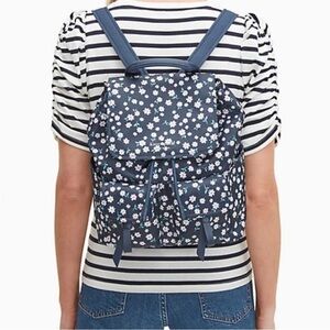 Kate Spade Carley Fleurette Nylon Flap Backpack Blue Floral