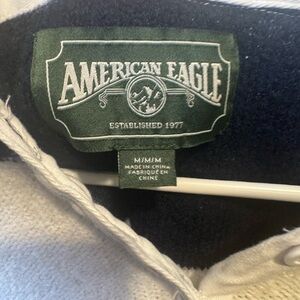 American Eagle Outfitters Navy and Cream Women's Crop Sweater