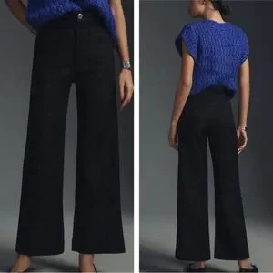 Anthropologie 30 Colette Wide Leg Ankle Pants Black Linen Office Career Business