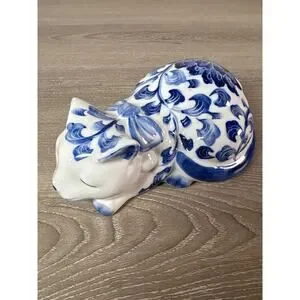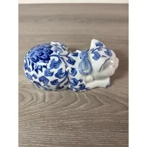 This Vintage Cobalt Blue & White Flowers Sleeping Hand-Painted Collectible Cat is a charming addition to any collection. Featuring a serene sleeping pose and exquisite cobalt blue and white floral detailing, this hand-painted ceramic cat exudes elegance and tranquility.