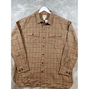 LL Bean Chamois Shirt Plaid Mens XXL Regular Fit Cotton Barley Brown Outdoor New