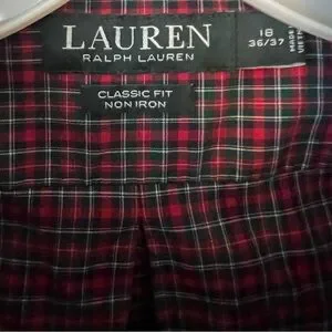 Lauren Ralph Lauren Mens Red Plaid 18 36/37 Button Down Shirt