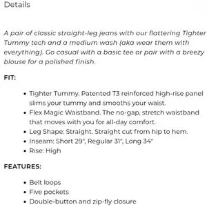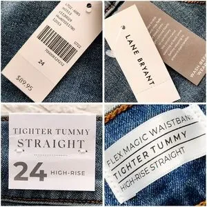 Lane Bryant high waisted straight leg stretch jeans with a tummy control panel to smooth your waistline. No gap waistband moves with your body's curves. The wash on these jeans is great, wear them with anything. Size 24, flat unstretched measurements in photos. Super cute & new with tags, in perfect condition.