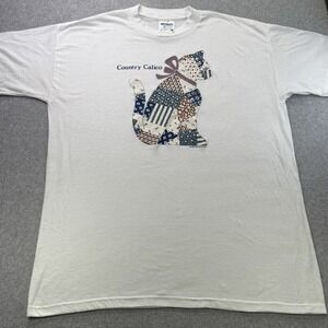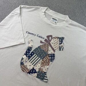 Vintage 1990 Country Calico Cat T-Shirt XL Single Stitch Air Waves Made USA
