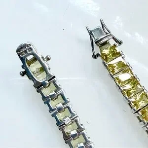 Dazzling Sterling Silver 925 Yellow Gemstone Tennis Bracelet Box Clasp