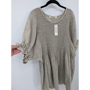 Three Bird Nest Dress Womens Medium Tan Boho Smocked Cotton Gauze Oversized NWT
