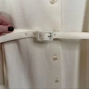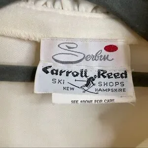 This amazing vintage dress is in excellent condition. There is a tiny flaw on the front where there is a little blue line (see pick). The belt is in suck good condition that I don’t think the dress has ever been worn. It was sold at the Carroll Reed Ski Shop. It buttons all the way down the front, and has a fabric belt. The neck and cuffs are ruffled and there’s also a bow tie on the neck. I am unsure of the fabric content, but it is a thicker winter fabric which will work for spring and fall. It’s marked an 8, but measurements are below.