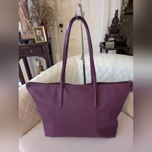 NWOT LACOSTE Plum Tote Bag for Women 19" X 12" X 6" With Bag Key Chain