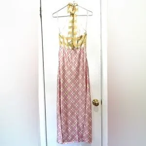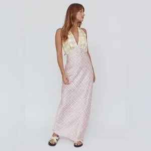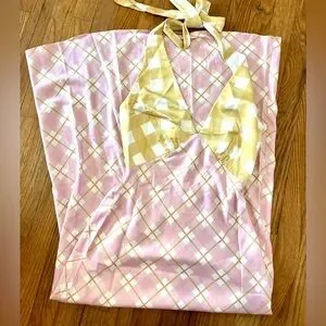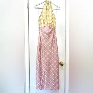 Picnic Plaid Satin Midi Dress Halter Y2K Slip AU 6 US XS