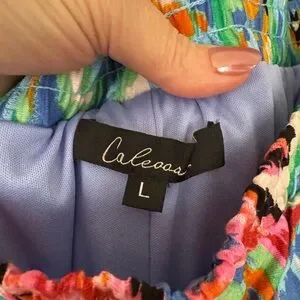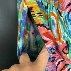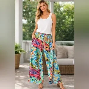Caleooa Abstract Print Wide Leg Pants NWT Size L | Colorful Resort Palazzo Pant