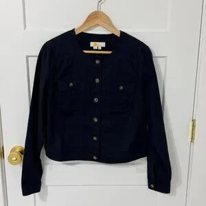 Boden Navy Blue Cropped Blazer Jacket Button Front Workwear Size 8