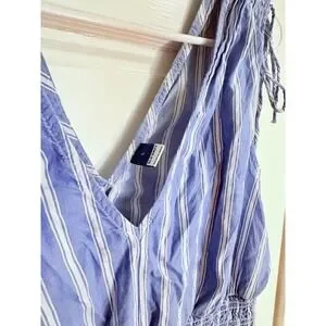 Old Navy Womens Coastal Nautical Blue White Striped Smocked V-Neck Top Large
