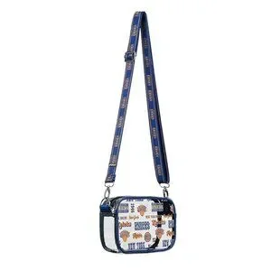 - Clear, see through design with woven team colored crossbody strap