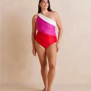 Summersalt Sidestroke One Piece Swimsuit 8 Pink Red Colorblock Vacation Summer