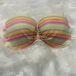 Size 36DD Victoria’s Secret Colorful Striped Strapless Bathing Suit Top E2