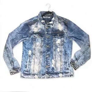 TrillNation Blue Distressed / Thrashed Denim Jean Jacket Size L