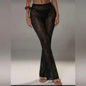 New High Waist Black Sheer Mesh Swimsuit cover Up Zebra Print Pants size M/L