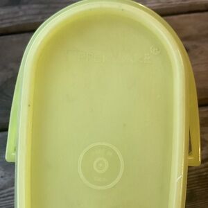 Tupperware Vintage Beverage Buddy Pitcher. Capacity is 2 quarts. The exact age of this pitcher is unknown, but this style was produced in the 1970s. Slim, oblong, flip top lid with pouring spout. The seal appears slightly faded, but pitcher is in overall good condition, especially considering its age. Airtight and leakproof. Can be used for liquids or solids. Mold # 587-10. Made in USA