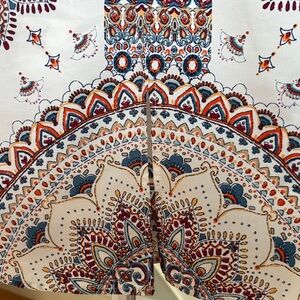 Size Medium - base color is white with blue, orange, tan, maroon accents - even more vibrant in person