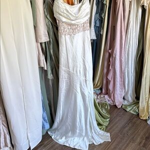 Selfie Leslie- Golden Era Cowl Neck Lace Waist Midi Dress White