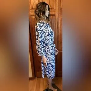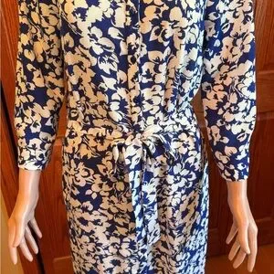 Monteau Los Angeles Women’s Dress Size Large Blue & White Floral Buttons