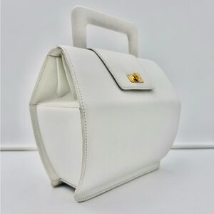 A more modern take on the iconic classic Orsay Vanity bag designed for Marilyn Monroe in 1958. The rare model Morabito Cousu Main ORSAY BIS 22 bag from the ultra-luxury hand stitched Signature Line in pristine white leather with flawless gold-plated hardware is in excellent condition. Has a very soft highest quality lambskin spotless interior. The Signature Line when new start at over $10K + Purveyors to the Imperial Household Agency • Made in FRANCE morabitoparis.com • instagram morabito_official