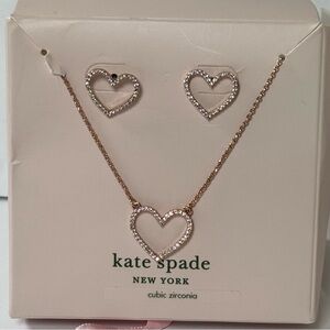 Kate Spade Rose Gold Pavé Open Heart Necklace & Stud Earrings Set NWT