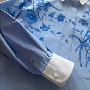 Gucci poplin shirt with flora detail. Removeable collar for a mock neck look. Worn once. Size 38 and intended larger fit. Would fit a S or M. From 2024 collection.