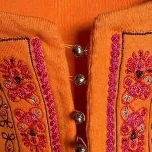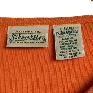 St. John’s Bay Embellished T-Shirt Women XL Orange Embroidered V-Neck