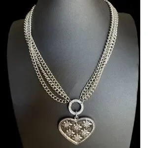 Oak & Ivy Silver Heart and Rhinestone Removable Pendant Necklace NWT