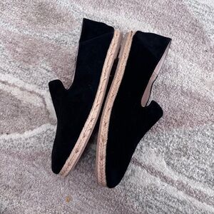 Jack Rogers Audrey Black Slip-On Espadrille Loafer with Tan Woven Sole Sz 9