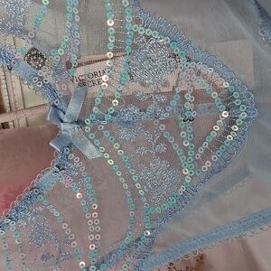 VICTORIA'S SECRET Blue Mesh Sequin Brazilian Slip NWT 2052