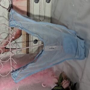 VICTORIA'S SCRET Blue Mesh Sequin Brazilian Slip NWT 2052