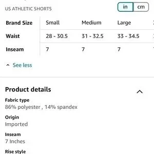 Comfortable athletic shorts. Made of 86% polyester and 14% spandex. Available in various sizes. Imported.