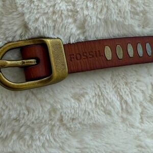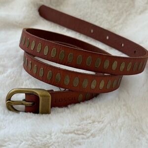 Fossil Women's Brown Leather Brass Tone Studded Belt. Size Small