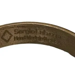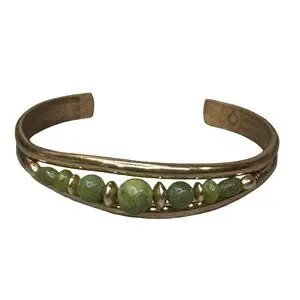 Artisan-crafted cuff bracelet featuring graduated jade stones nestled in an intricately designed bronze-toned metal setting, meticulously handmade in the United States by renowned artisan Sergio Lub. The piece exemplifies precision metalwork with carefully positioned green jade stones of varying sizes, creating an elegant, organic aesthetic.