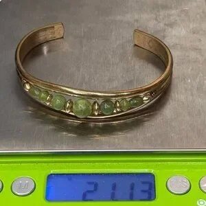 Vintage Signed Handcrafted Jade Stone Jadeite Cuff Bracelet Sergio Lub Usa