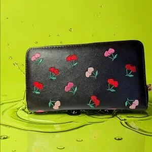 This cool Betsey Johnson black with Cherries Wallet has plenty of space with card holders, a place for your check book, cash etc. Make this the perfect gift for that special someone.. or just spoil yourself!