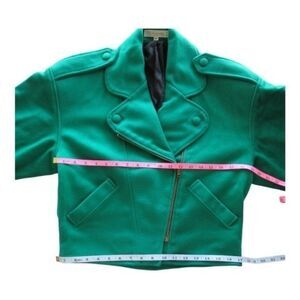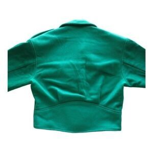 This Vintage Steven Amaral wool motorcycle style cropped jacket with exaggerated shoulder pads, highlighting the oversized retro 80’s style. Made in the USA. Please view photos for full description and measurements to confirm fit. This preowned jacket has a few tiny holes in the wool. Seller is not responsible for brand sizing or fit. Approximate Measurements: Length: 21” Shoulders: 21” Chest: 19” Waist: 17” Sleeve Length: 19” Fabric: 100% Wool Size: Medium