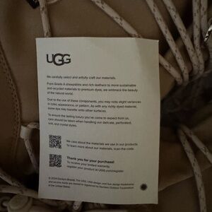 Rear pull tab, 10mm UGGplush™ 60% upcycled wool, 40% TENCEL™ Lyocell collar, Leather vamp, Cuffable shaft, Shaft and upper textile made with 47% recycled polyester fibers and 53% nylon fibers