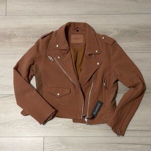 Blank NYC Cropped Brown Leather Moto Jacket