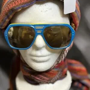 Vintage Foster Grant USA Blue Yellow White Mirrored Ski Sunglasses