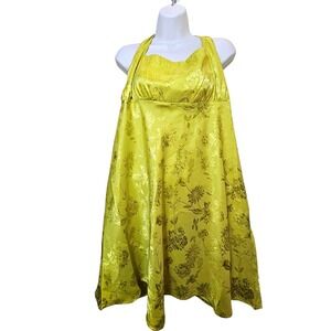 Wild Fable Halter Dress Women XXL Yellow Excellent Floral Jacquard Satin