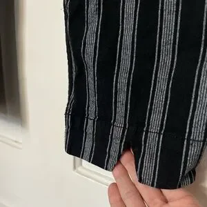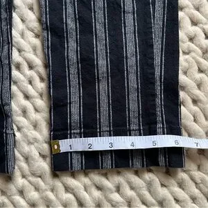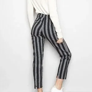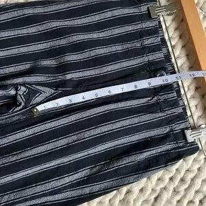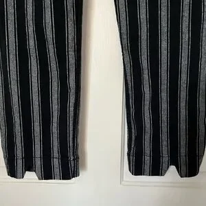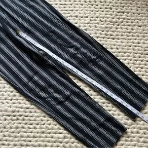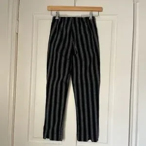 Cropped pants with bold black and gray stripes. Cute little cut out on back of calf. Please check measurements carefully. Brandy has their own sizing so no size mentioned in tag. Great for all seasons. Some loose threads around buttons. Very hard to notice when on body and done up. With flat sandals or boots and a chunky knit. 🖤