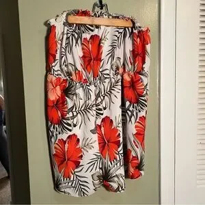 Shein Curve Strapless Romper White Orange Tropical Floral 2XL