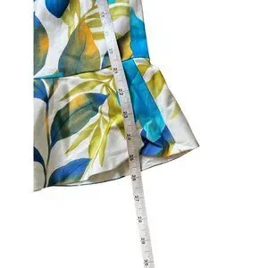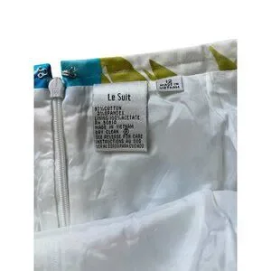 Le Suit Women's White Floral & Turquoise with a stretch ruffle Hem Skirt