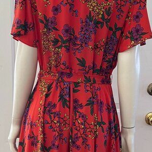 Nanette Lepore Terracotta Futter Sleeve Chiffon Pintuck Floral Print Shirtdress Sz 14