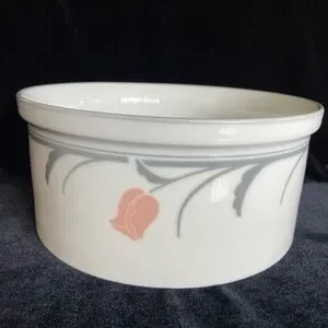 DANSK Tivoli Belles Fleurs Grey Round Soufflé Casserole Baking Dish EXCELLENT